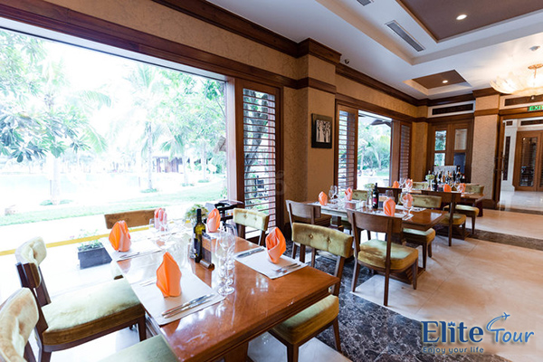Tiếp đến, Elite Tour sẽ đưa bạn tới nhà hàng Hương Việt – không gian ẩm thực thuần Việt vô cùng độc đáo. vơ nhà hàng được chia làm 2 không gian tách biệt: Ấm cũng, lãng mạn với dãy bàn ăn được xếp trong nhà nhà hàng và vui tươi, sôi động với không gian ngoài trời bên hồ bơi chính. ghé thăm nơi đây, du khách sẽ được tận hưởng hương vị thuần túy ẩm thực Việt Nam.
